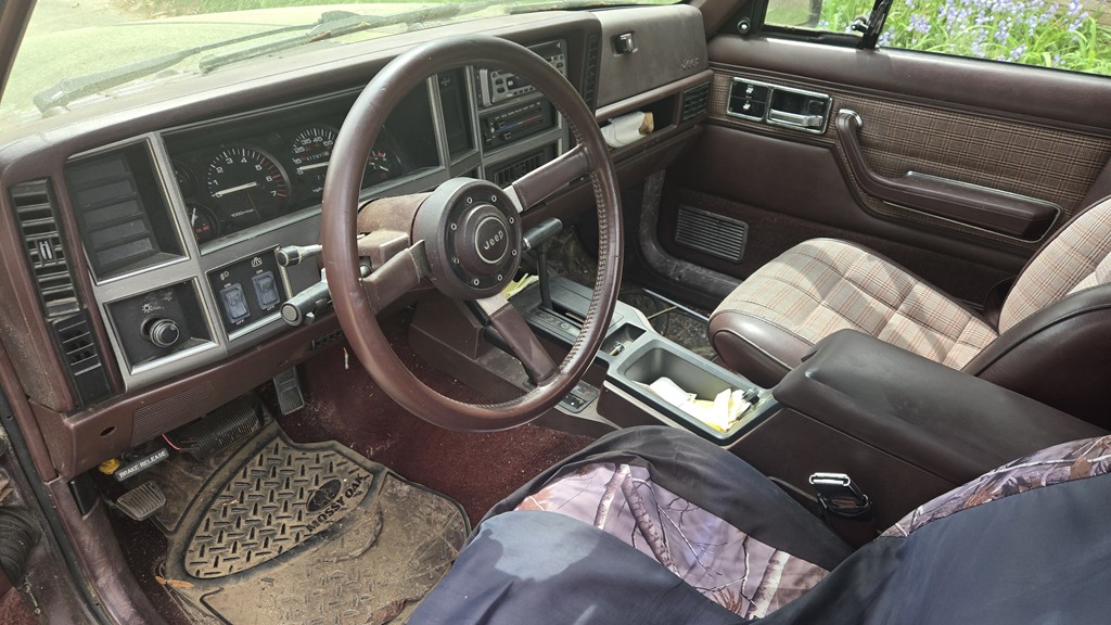 4.0 v6. 4 wheel drive jeep comanche. Engine and transmission rebuilt approx 200k ago. Needs some more work on both. No rust.